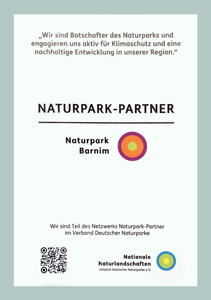 Für Nachhaltigkeit, Klimaschutz und regionale Wertschöpfung wurden die Hoffnungstaler Werkstätten im November 2025 als erster Naturpark-Partner geehrt. Dieses Zertifikat begründet ein Netzwerk, das regionale Akteurinnen und Akteure für eine nachhaltige Regionalentwicklung zusammenbringen soll.